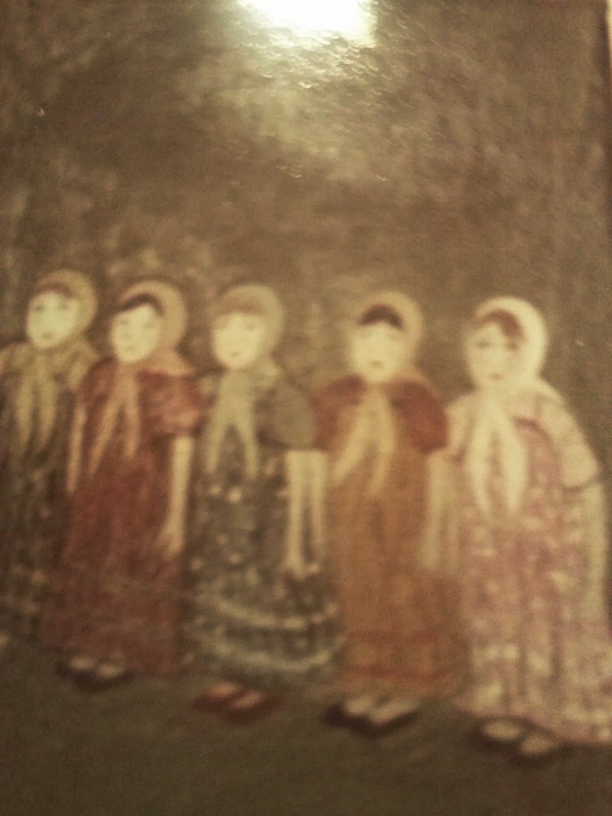 L'immagine non è nitida, l'ho catturata da una piccola fotografia, mi è capitata tra le mani, rovistando nei cassetti dei ricordi. I particolari non ben delineati, sulla tela erano molto ben rappresentati.