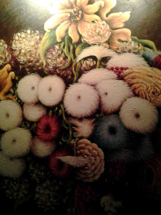 composizioni petalose, imprigionate dentro cornici d’epoca intatte e ancora